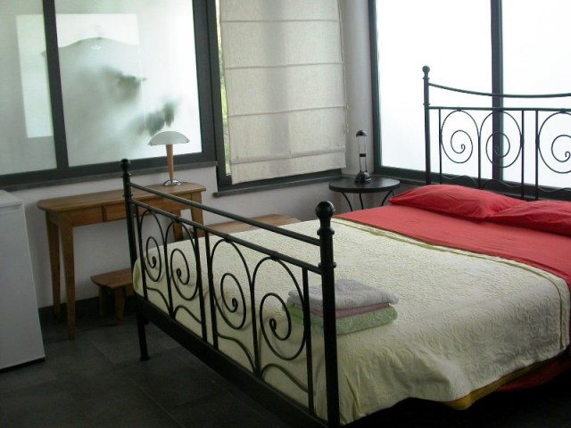 Descrizione/description/beschreibung : Camera con letto matrimoniale pił letto singolo, bagno in camera con doccia, frigo, parete vetro, terrazzino fronte casa, panoramico, zona S.Vincenzo, giardino.(No angolo cottura) |
